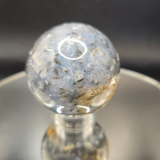 Sold outBlue plume Agate w Marcasite sphere