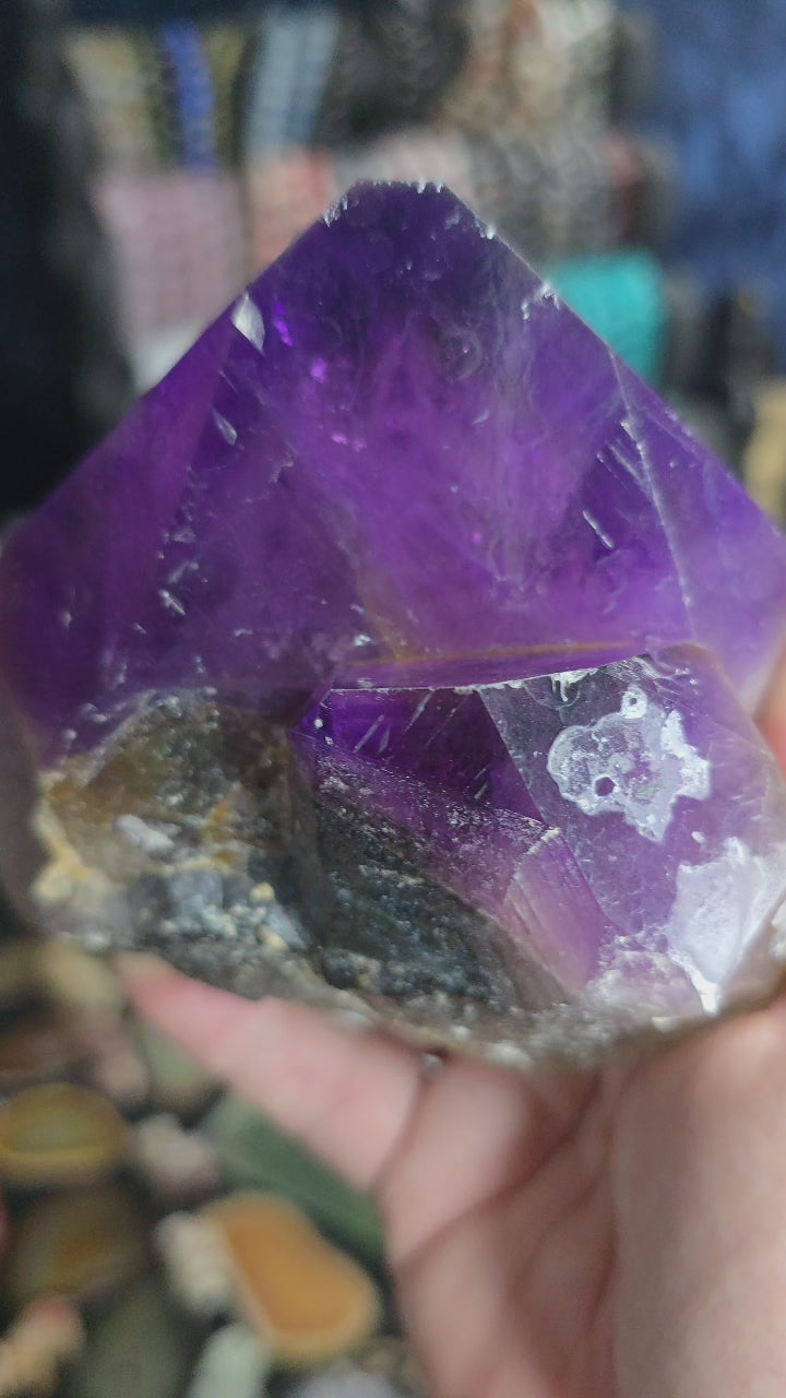 The best Amethyst in Australia comes out of Wyloo Station, and the miners we work with take pride in all their specimens they mine. We got a small selection of this harder to find Amethyst from Wyloo Station, and they are stunning in formation and saturated color along w interesting etching on the faces. This specimen is approximately 4 1/2x4 1/2 inches and weighs 1 pound 13 ounces. Spiritually, Amethyst can give you protection and clear your energy field of anything negative. It's a great crystal for developing your intuition and psychic abilities. Also known to help get in a deep meditative state and help with breaking bad habits.