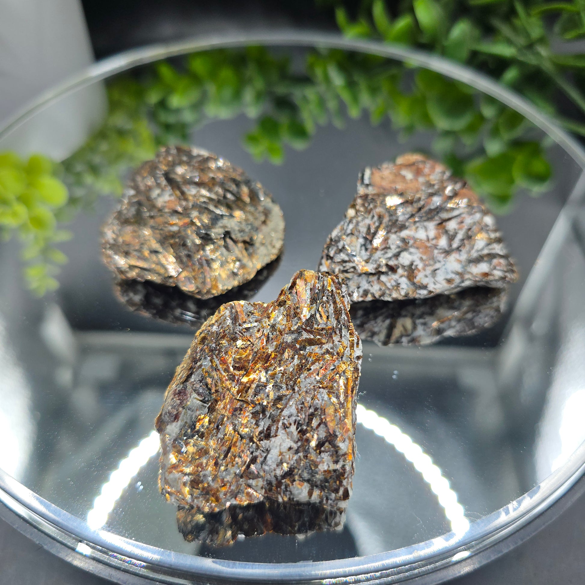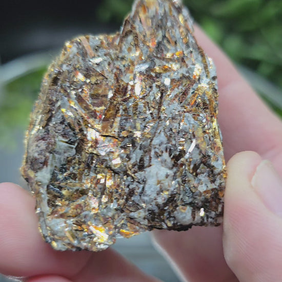 These beautiful golden and copper Astrophyllites are one for any collection as these are getting harder to find in great quality. The listing is for one piece and are approximately 2x1 1/2 inches and weighs 1.5 oz. Spiritually Astrophyllite helps strengthen the energy field around you and is great to rid any negative or dark entities and energies that may have been pulled into your field. It is known to remove them and send them to the light to be used as a positive energy. It is also a great stone to work with to astro travel and communicate with other dimensions. Astrophyllite is known to help with self acceptance and pull anything hidden from the shadows to light.