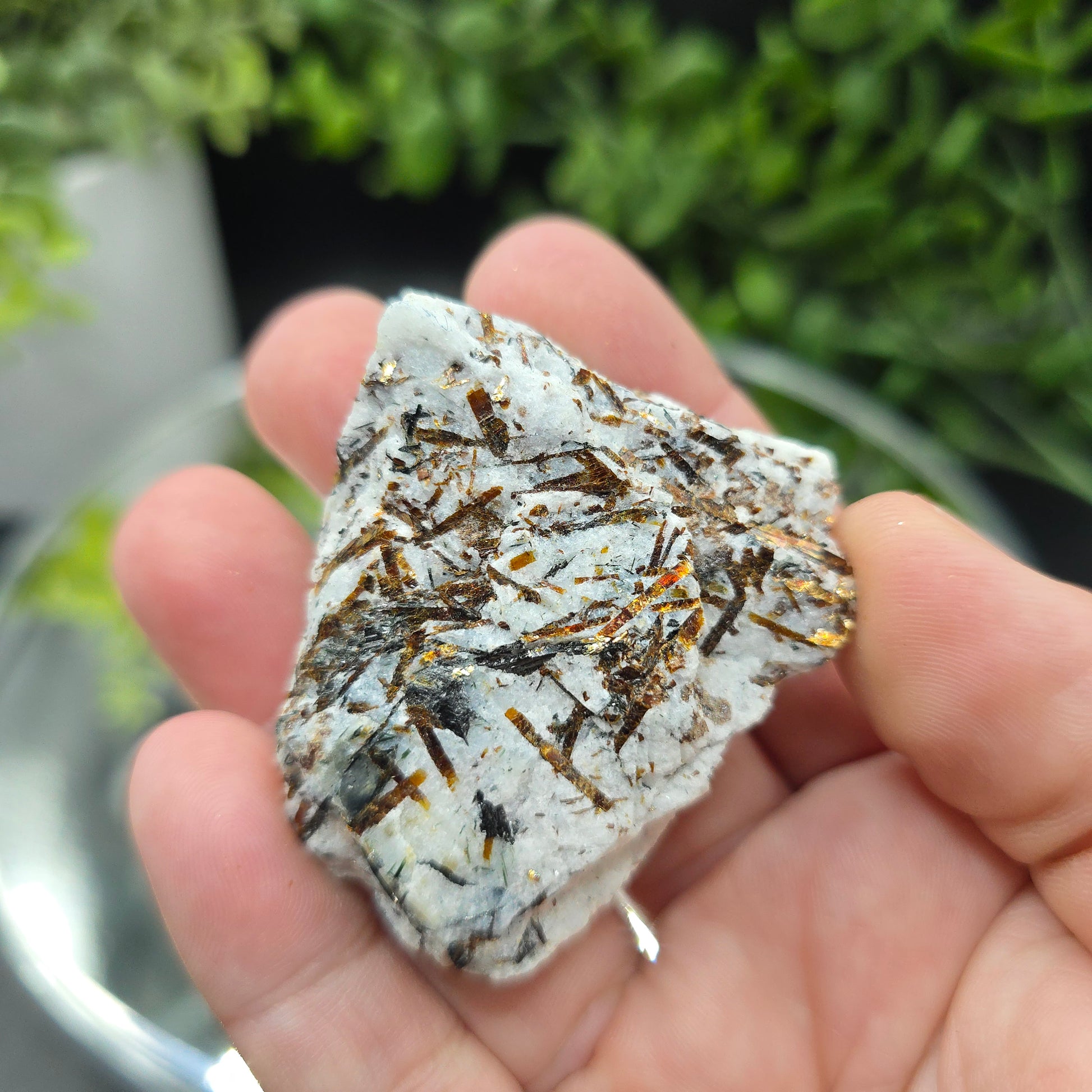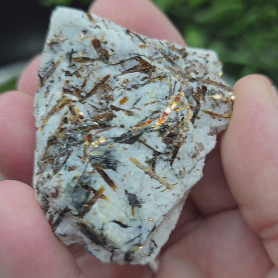This beautiful golden and copper Astrophyllites is one for any collection as this material is getting harder to find in great quality. The listing is for one piece and is approximately 2x1 1/2 inches and weighs 1.5 oz. Spiritually Astrophyllite helps strengthen the energy field around you and is great to rid any negative or dark entities and energies that may have been pulled into your field. It is known to remove them and send them to the light to be used as a positive energy. It is also a great stone to work with to astro travel and communicate with other dimensions. Astrophyllite is known to help with self acceptance and pull anything hidden from the shadows to light.