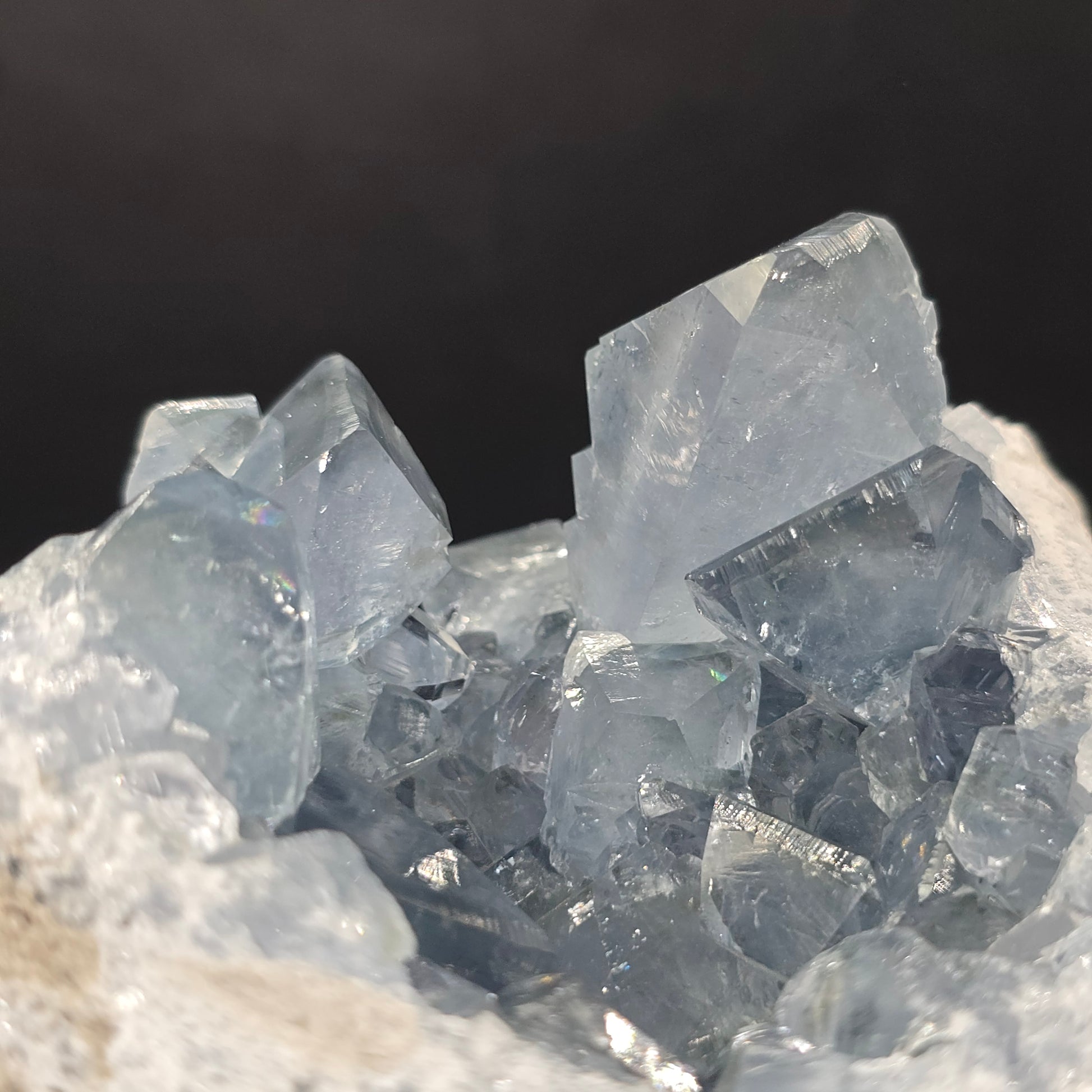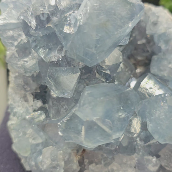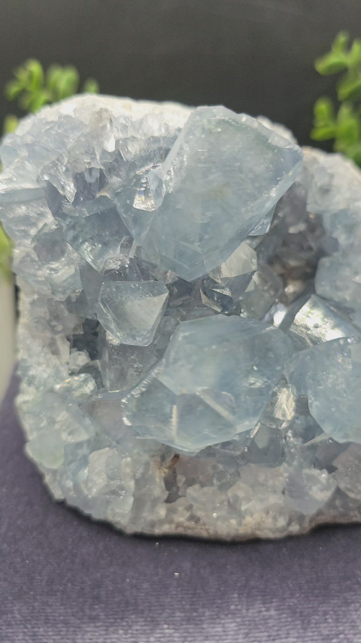 This is the quality you want with Celestite. The terminations with the etchings on the top are something you don't see very often. The color saturation is on point as well. It's the etching that makes this piece stand out above the rest. This is an absolute must in any serious collectors of Madagascar Minerals. This piece is approximately 5 1/2x5 1/2 inches and weighs 2 pounds 12 oz. Spiritually, Celestite is known to attract angels into your energy field, help bring a calmness to your nervous system, and connect you to your spirit guides and angels.