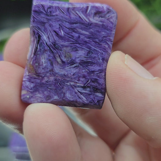Check out this amazing old stock Charoite w the color saturation and chatoyance you want in this material. This quality is becoming a little harder to find. These tiles are approximately 1x1 oz and .5oz. Spiritually Charoite is known to purge all negative out of spaces and yourself. Its known as a great one to protect against psychic attacks and prevent psychic burnout. You will receive one piece for this price.