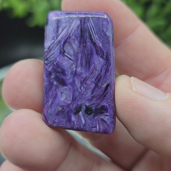 Check out this amazing old stock Charoite w the color saturation and chatoyance you want in this material. This quality is becoming a little harder to find. These tiles are approximately 1x1/2 oz and .4oz. Spiritually Charoite is known to purge all negative out of spaces and yourself. Its known as a great one to protect against psychic attacks and prevent psychic burnout.