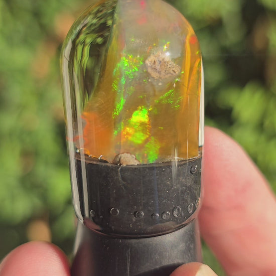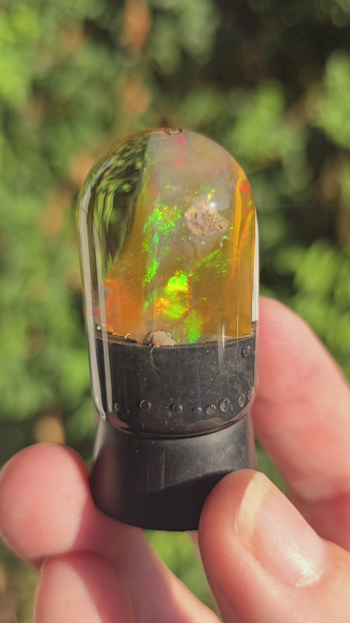 This is simply a stunning welo opal from Ethiopia. We grabbed these straight from the miners who released their new way of displaying them in these nice quality jars that remind me of snow globes. They are approximately 2 inches in size. Spiritually, Welo opals are known to help stabilize your entire chakra system, enhance your intuition and bring in hope and good luck. Fyi these lil opals must stay in water or they will dry out and crack as these opals contain 80% water.