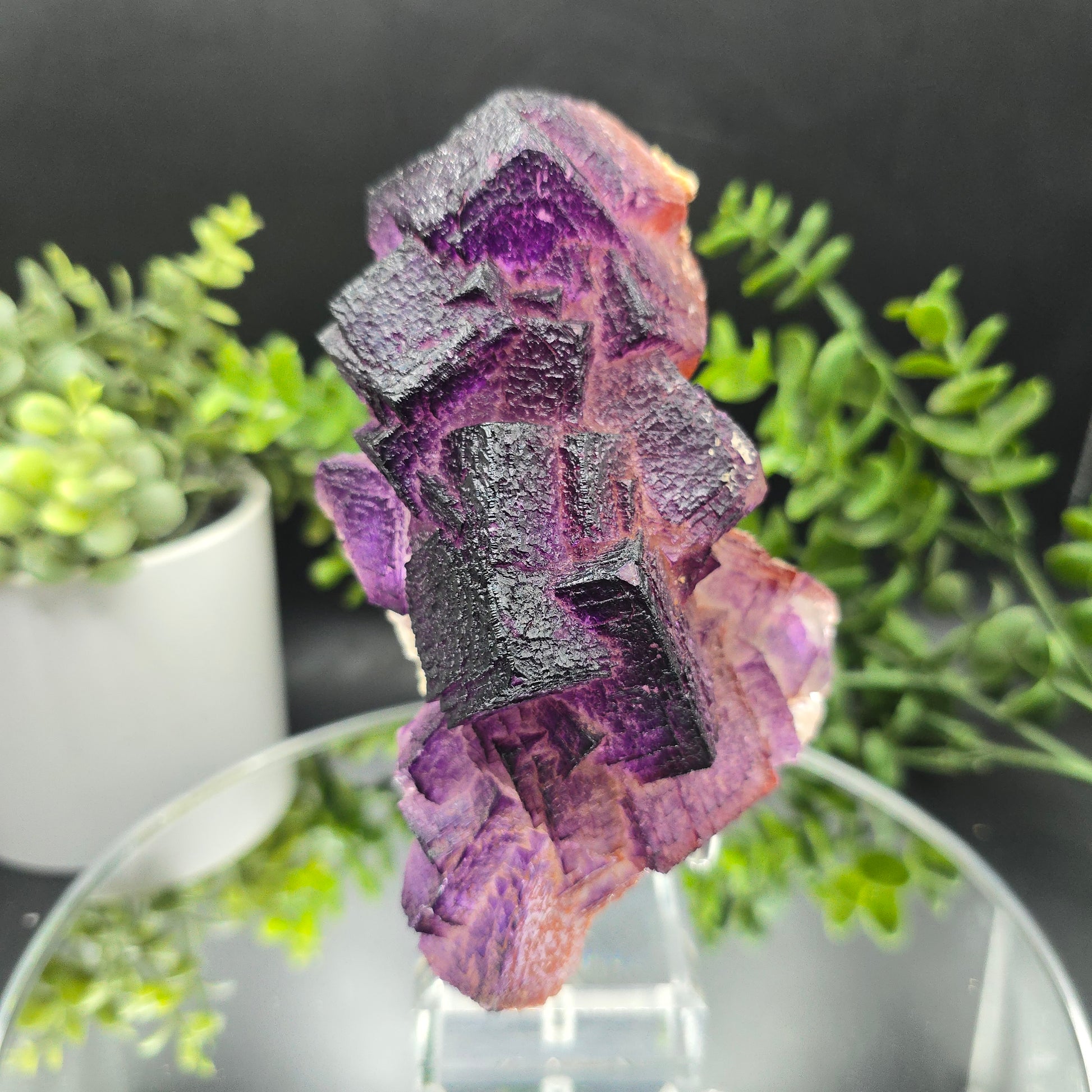 This exceptional Fluorite comes out of an old collection that was very well taken care of. Mined from El Filo Mine Durango Mexico with this Magenta color makes this a rare material. It's definitely a piece for any serious Fluorite or mineral collector. This piece is approximately 6x4 inches and 1 pound 7 oz. Spiritually, Fluorite is known for clearing the energy field, getting rid of negative thoughts, and bringing in mental clarity.