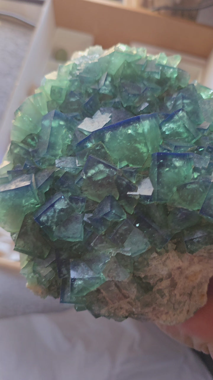Fluorite from Madagascar. Color changing in the sun and one of the best i have seen from that locality.