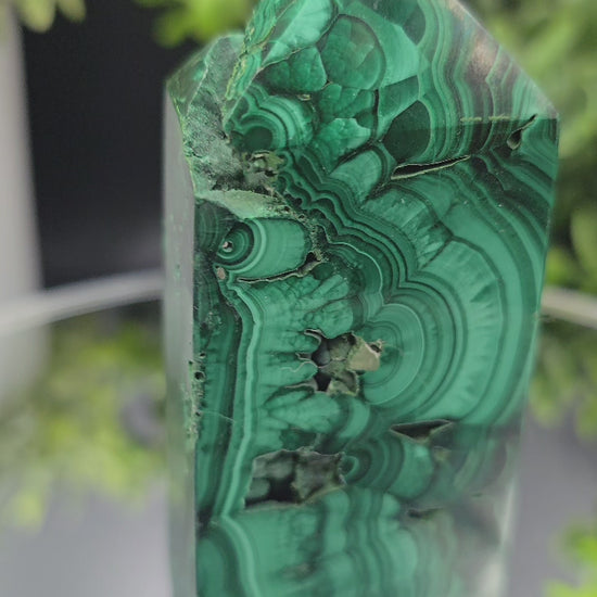 This gorgeous Malachite point will look amazing in any collection or decor. It does not have any filler. This point stands at approximately 3 inches high and 1 1/2 inches width and weighs in at 6.3 oz. Spiritually, Malachite is known as a transformation stone along with protection against the evil eye. It can give you an energetic shell to keep any negative energies or entites out of your aura field. Also great to help with any emotional fog you may have and bring creativity and confidence in your life. You will receive this exact piece.