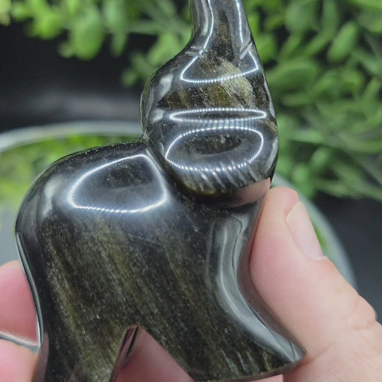This cute and beautiful Elephant is polished and mined by a third generation family out of Mexico. We are so happy to work with this wonderful family to bring their amazing Obsidian pieces to you. This Elephant stands at approximately 3 1/2 inches long by 2 inch wide and weighs in at 5 oz. Spiritually, Obsidian is known for it's protection against any negative energies. It can help cleanse the aura field of any disharmony, negative attachments or anything floating around that does not serve you. It is great to help understand and accept the darker side and can help break any negative patterns you may have.