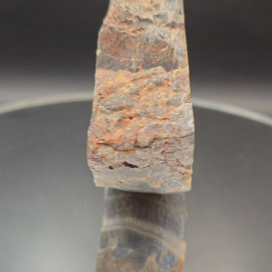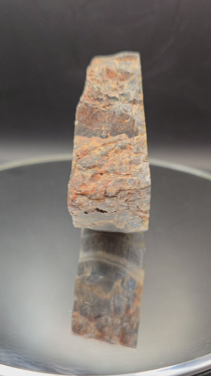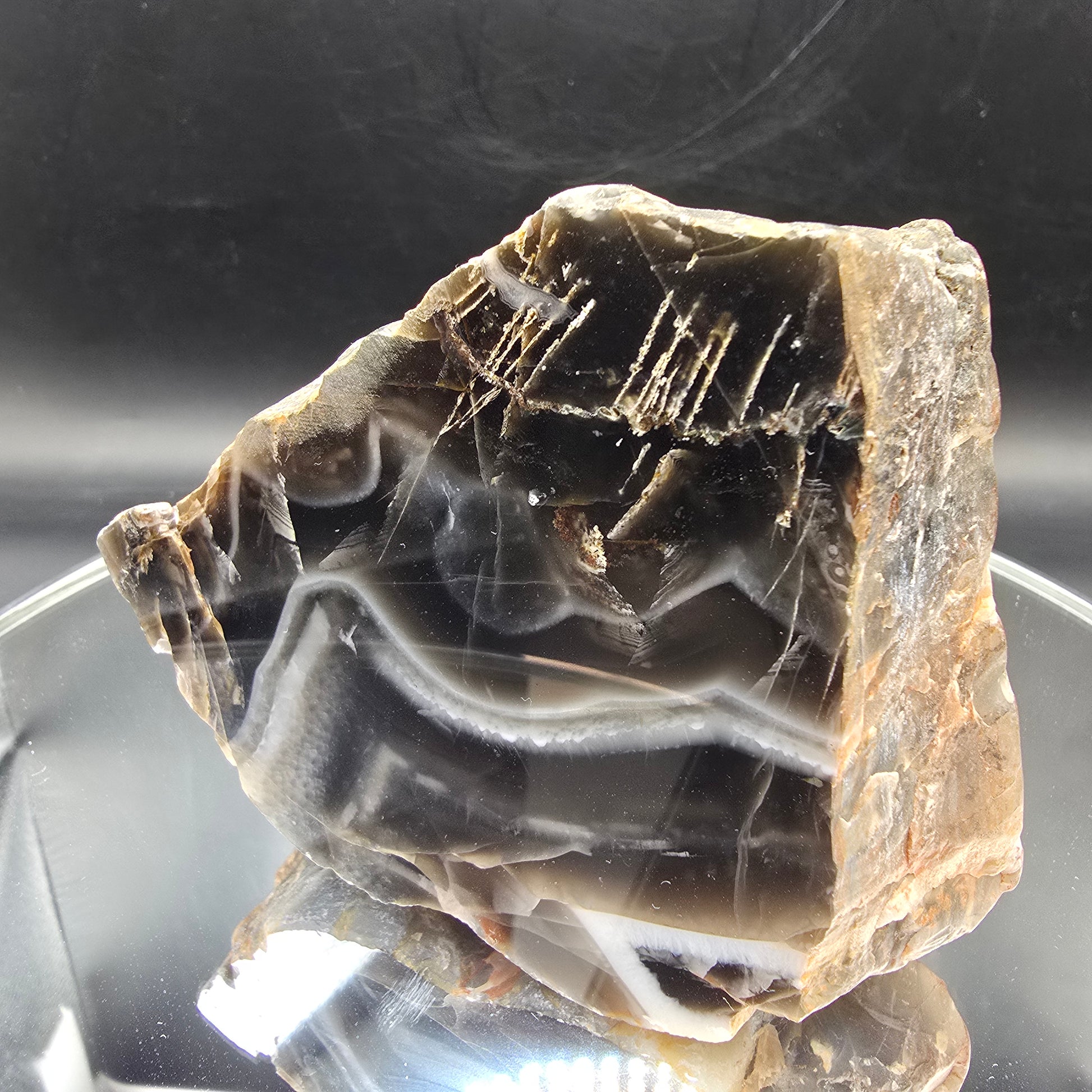 Amazing! This is the oldest Agate! Dated back 3.48 billion years old. These agates are known for the shadow effect (parallax) in the banding and little pyrite flecks throughout. This piece was mined about 50 feet from the original vein and was found with black mineral most likely hematite which makes for the unusual color of the Pilbara. This piece is approximately 13 ounces and 3 inches by 3 1/2 inches. We attained these from a family of miners who actually mine, cut, and polished their pieces. Spiritually, Agates are known to carry ancient knowledge and bringer of good luck.