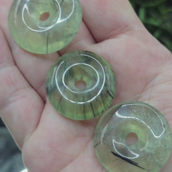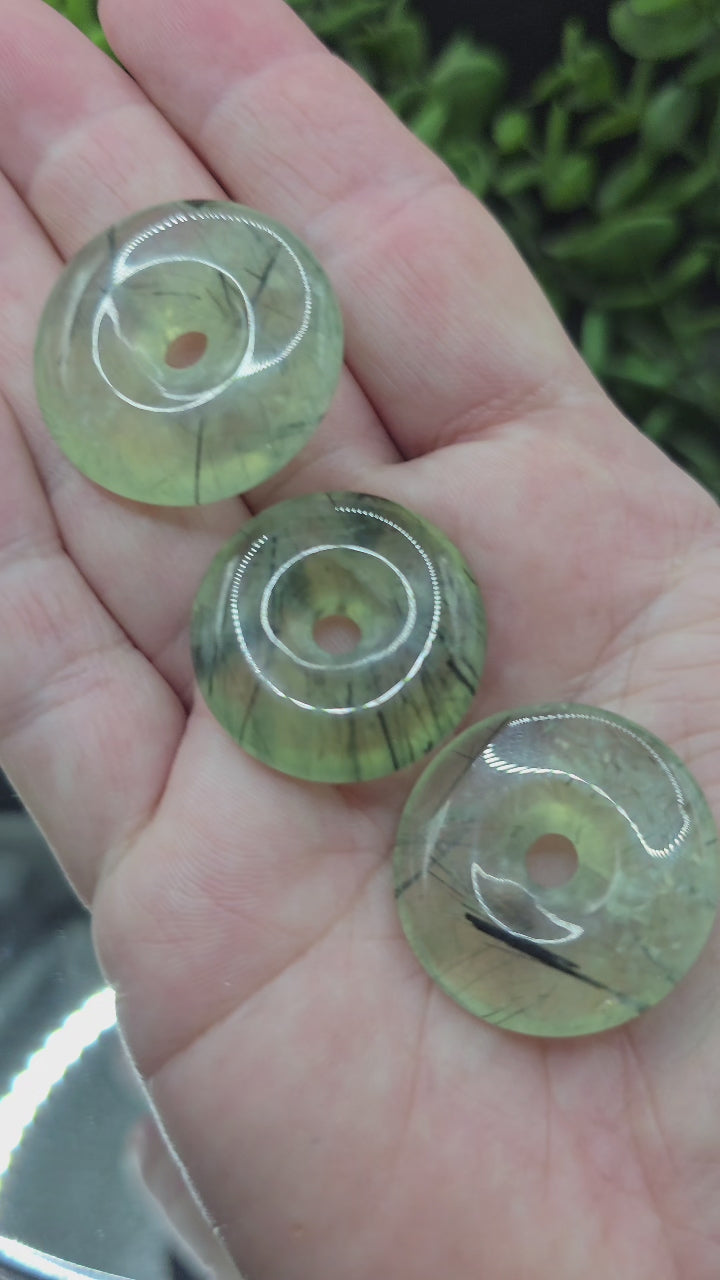 These Prehnite donuts are a great piece to have either as a sphere stand, on display or turned into a pendant. The price is for one donut and is approximately 1 inch. Spiritually, Prehnite is known to help avoid taking on other people's energies and blocking their negative vibes. It is also known to help your nervous system and give a calming feeling