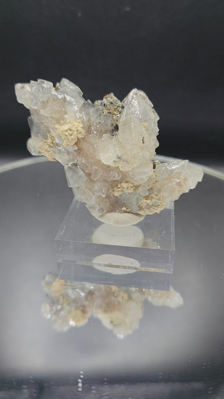 You just don't see these amazing pieces that often anymore. This stunning quartz w hematite & calcite from Inner Mongolia is one for the books or should say collectors case. Coming out of an old collection, this is definitely a serious collectors piece. Beautiful terminations stacked on top of each other with nice hematite crystals, Chalcopyrite a lil arsenopyrite and calcite sprinkles. This piece is approximately 4x2 1/2 inches and 5 oz. Spiritually, this quartz is known to deepen your connection to higher vibrational energies yet keep you grounded and protected.
