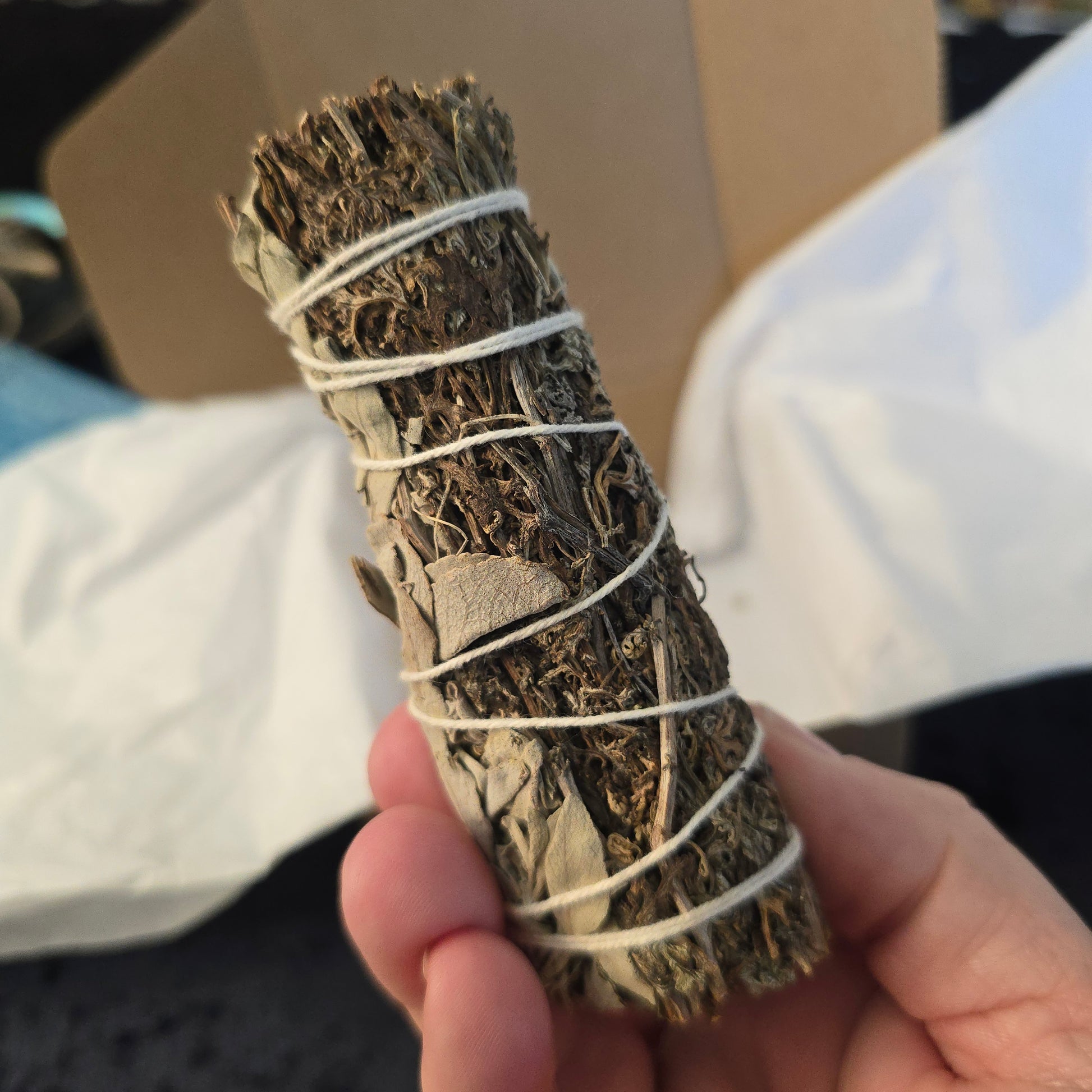 All of these smoke cleanse herbs come from a pesticide free small farm in Southern California. None of the herbs are taken from native plants. Sticks are approximately 4 1/2 inches.
